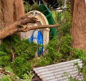En medio del daño de los árboles, Nuestra Señora se mantuvo como protección para nuestro pueblo de Garyville (ver artículo)