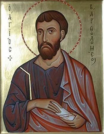 Cuando San Bartolomé se fue a la India, comenzó a echar a los demonios de los templos en que eran adorados y escuchados a través de sus profetas. Muchísimos milagros operó el santo en este sentido. Y por estos milagros, Polimio el rey se convirtió junto a su familia y renunció al trono, haciéndose discípulo del apóstol. A partir de entonces rigió los destinos del reino un hermano de Polimio, llamado Astiages. Poco después de que este iniciara su reinado, los pontífices de los templos paganos celebraron una asamblea y en ella acordaron quejarse ante el nuevo monarca por los daños inferidos a los dioses con la profanación del templo real y la destrucción de las imágenes de los ídolos; y, en efecto, se presentaron ante Astiages y acusaron al apóstol de haber ocasionado con sus artes mágicas los mencionados destrozos y de haber pervertido a Polimio. Astiages se hizo eco de la denuncia y, dejándose llevar de la cólera, ordenó que inmediatamente mil soldados, perfectamente armados, salieran en persecución de Bartolomé, al que sus perseguidores capturaron y condujeron ante el nuevo rey.