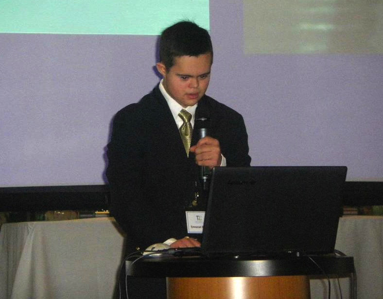 Muestra de estas charlas fue la que se produjo en diciembre de 2012, en Houston, en la reunión anual sobre la Trisomía 21. Allí Emmanuel encandiló a todos relatando sus aventuras y sus viajes por el mundo, sobre sus estudios y también sobre su violín. También habló una parte en francés y habló sobre las obras de arte que había visitado durante su estancia en París. Luego respondió a preguntas sobre su vida y a las dudas que otras personas pueden tener.