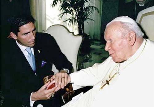 Caviezel confiesa que vive inspirado por el “Totus Tuus” (“Todo tuyo”), el lema del pontificado de San Juan Pablo II. “Esta es la esencia de mi fe. Mi relación con Jesús es gracias a ella. Me trajo a Jesús”.