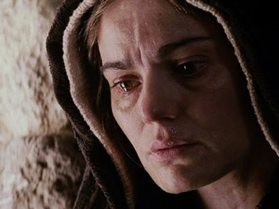 Dejadme entrar. Buscaré por el suelo, en la mesa, en el asiento, las huellas de sus pies, de sus manos, y las besaré, las besaré hasta consumirme los labios… Buscaré… buscaré… Quizás encuentre un cabello de su rubia cabeza. Un cabello que no esté encostrado de sangre. Pero, ¿sabéis lo que es un cabello del hijo muerto para su madre? Tú, María de Cleofás, y tú, Salomé, sois madres, y ¿no lo entendéis?