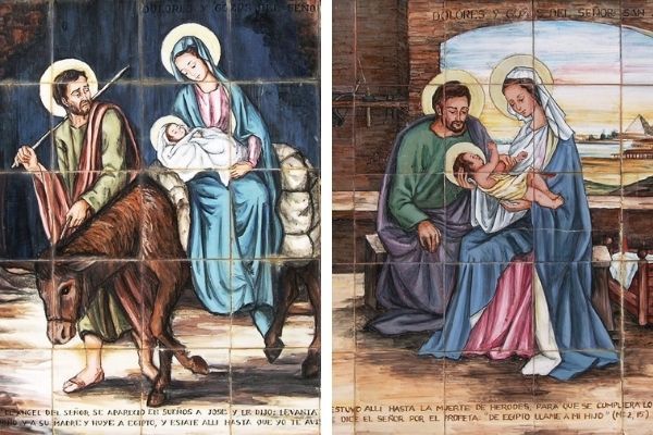 Quinto dolor: El ángel del Señor se apareció en sueños a José y le dijo: Levántate, toma al niño y a su madre, y huye a Egipto, y estate allí hasta que yo te avise, porque Herodes va a buscar al niño para matarlo (Mt 2,13).