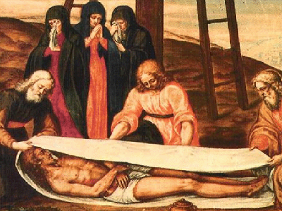 La secuencia del descendimiento es muy piadosa, sobre todo cuando el hijo fue devuelto a los brazos de la madre. Si su espíritu descansaba ya en el seno del Padre, ahora su cuerpo descansa en el regazo de la madre, la Pietá. María besaba las llagas de ese cuerpo con amor intenso de comunión.