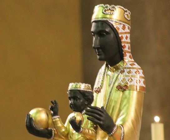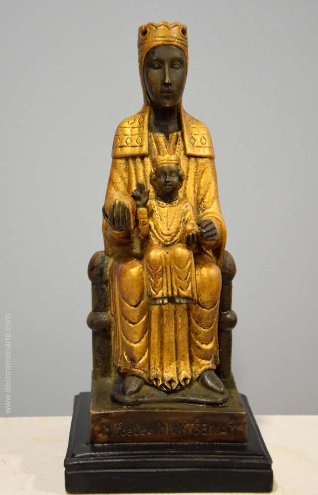 El culto a Santa María en Montserrat queda concretado bien pronto en una imagen. La misma que veneramos hoy. La leyenda dice que San Lucas la labró con los instrumentos del taller de San José, teniendo como modelo a la misma Madre de Jesús, y que San Pedro la trasladó a Barcelona. Escondida por los cristianos, ante la invasión de los moros, en una cueva de la montaña de Montserrat, fue milagrosamente hallada en los primeros tiempos de la Reconquista y también maravillosamente dio origen a la iglesia y monasterio que se erigieron para cobijarla. En realidad, Santa María de Montserrat es una hermosa talla románica del siglo XII. Dorada y policromada, se presenta sentada sobre un pequeño trono en actitud hierática de realeza, teniendo al Niño sobre sus rodillas, protegido por su mano izquierda, mientras en la derecha sostiene una esfera. El Niño levanta la diestra en acto de bendecir y en su izquierda sostiene una piña. Rostro y manos de las dos figuras ofrecen la particularidad de su color negro, debido en buena parte, según opinión de los historiadores, al humo de las velas y lámparas ofrecidas por los devotos en el transcurso de varios siglos. Así es como la Virgen de Montserrat se cuenta entre las más señaladas Vírgenes negras y recibe de los devotos el apelativo cariñoso de Moreneta.