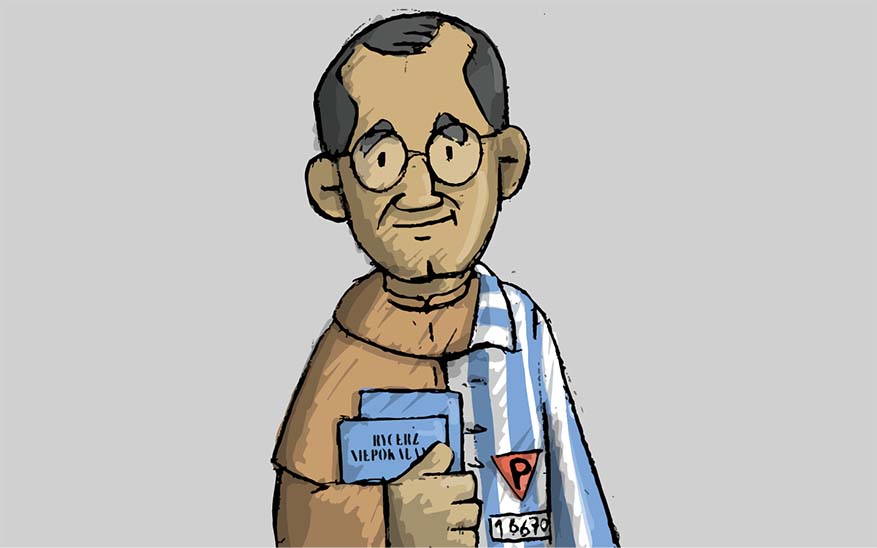San Maximiliano Kolbe, fue un sacerdote franciscano, voluntariamente dio su vida en Auschwitz a cambio de la vida de otro prisionero que iba a ser ejecutado. En su vida luchó por la difusión de la devoción al Corazón Inmaculado de María.