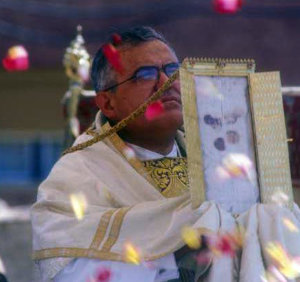 El Padre, Mateo Martínez encontró a las seis Hostias empapadas en sangre y pegadas a los corporales.