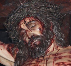 Este Cristo ha sido realizado por el escultor y catedrático sevillano, Juan Manuel Miñarro, reflejando los detalles de la Sábana Santa.