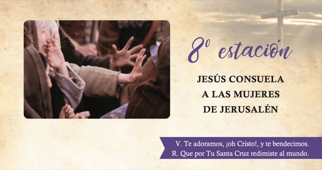 Consolar a los afligidos y perseguidos era la misión del Salvador en los días de su vida mortal, misión a la que quiere ser fiel en el momento mismo de sus mayores sufrimientos. Olvidándose de sí, enjuga las lágrimas de las piadosas mujeres que lloraban por sus dolores y por Su Pasión, ¡Qué bondad!